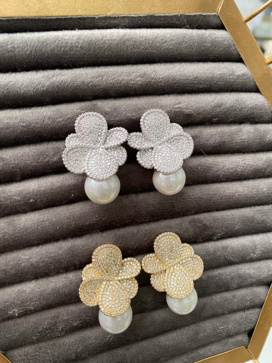 Arete floral perlas